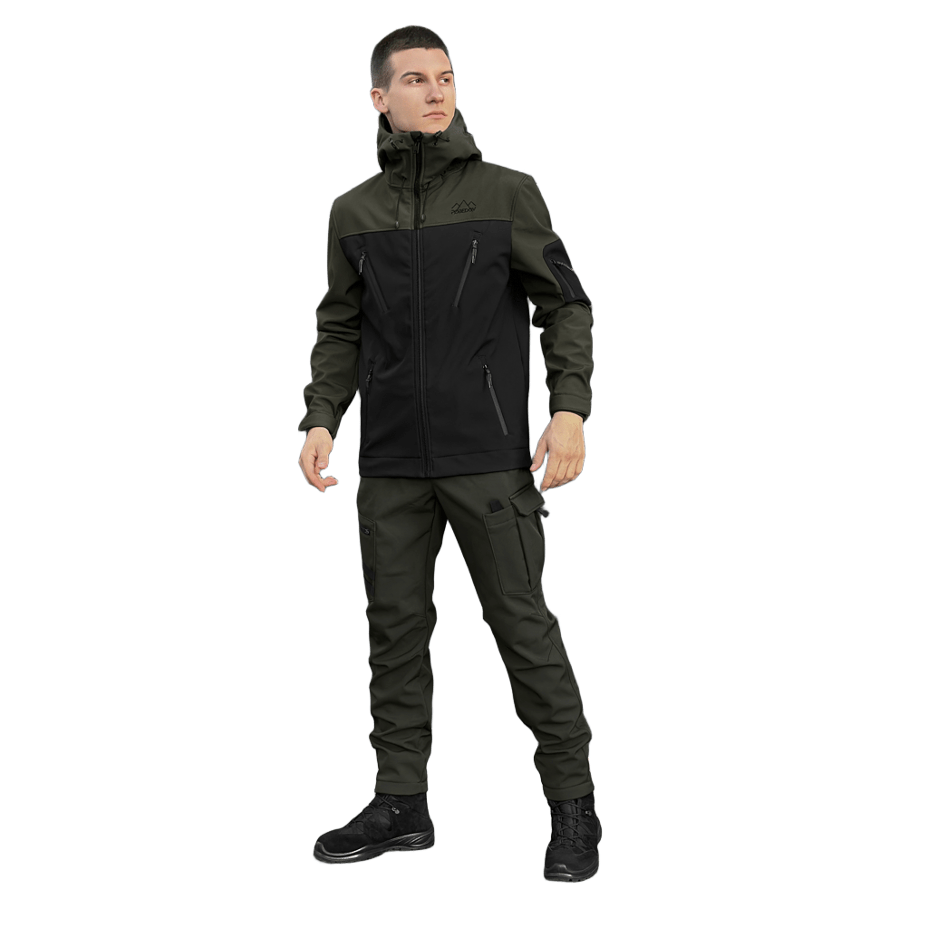 Чоловіча куртка Korol' Lev виконана за унікальними технологіями з використанням ЯКІСНОЇ тканини, яка має водовідштовхувальні властивості. Особливість матеріалу Soft Shell полягає в поєднанні 2 шарів: плащової тканини та флісу. Куртка із підвищеним горлом, що додатково захищає від поривів вітру та дощу.